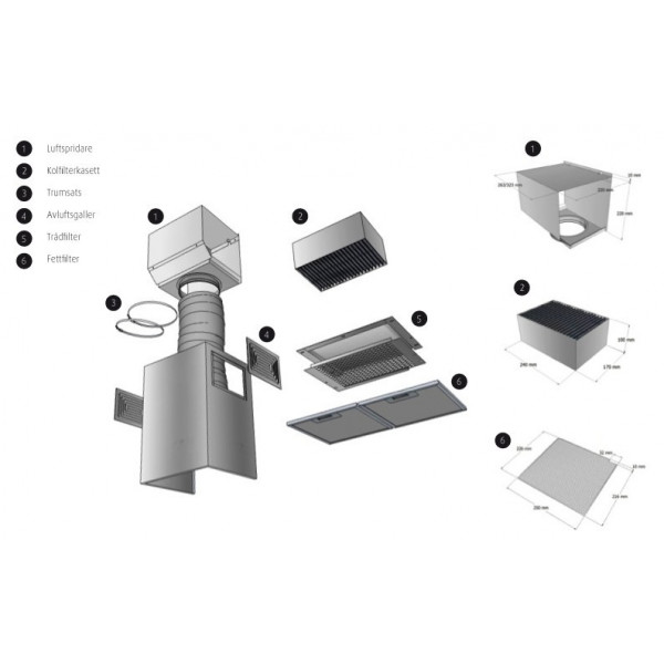 The carbon filter cassette fits all Fjäråskup's IN House models