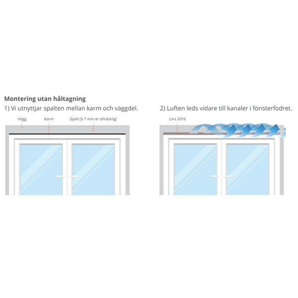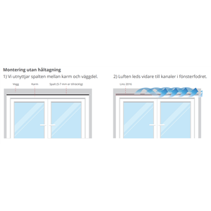Montering utan håltagning: Installationen sker enkelt med ventilerande och ljuddämpande fönsterfoder.