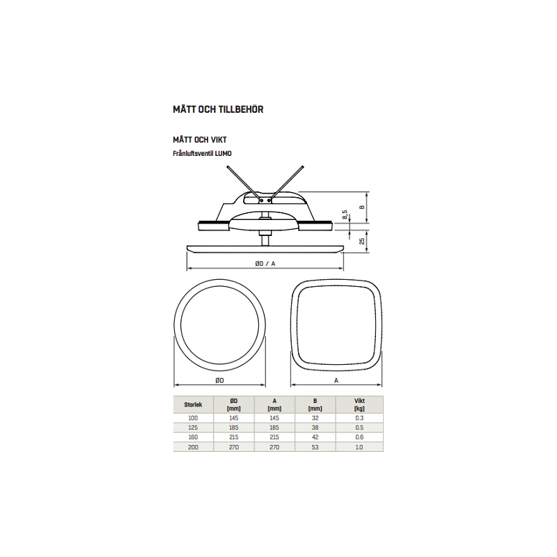 LUMO 100 Fyrkantig Frånluftsventil