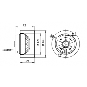 Fläkthjulet är tillverkat i svartlackerat stål med framåtböjda skovlar och har rotationsriktning medurs. Utrustad med en spänningsreglerbar asynkronmotor av ytterrotortyp (Motorbeteckning: M2E068-BF). Inbyggt termokontaktmotorskydd, återställs genom att bryta nätspänningen.